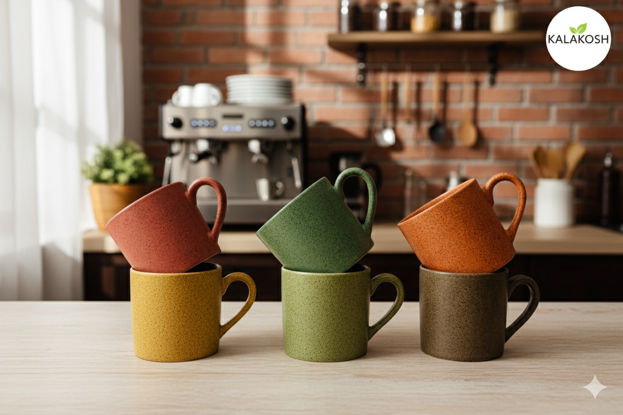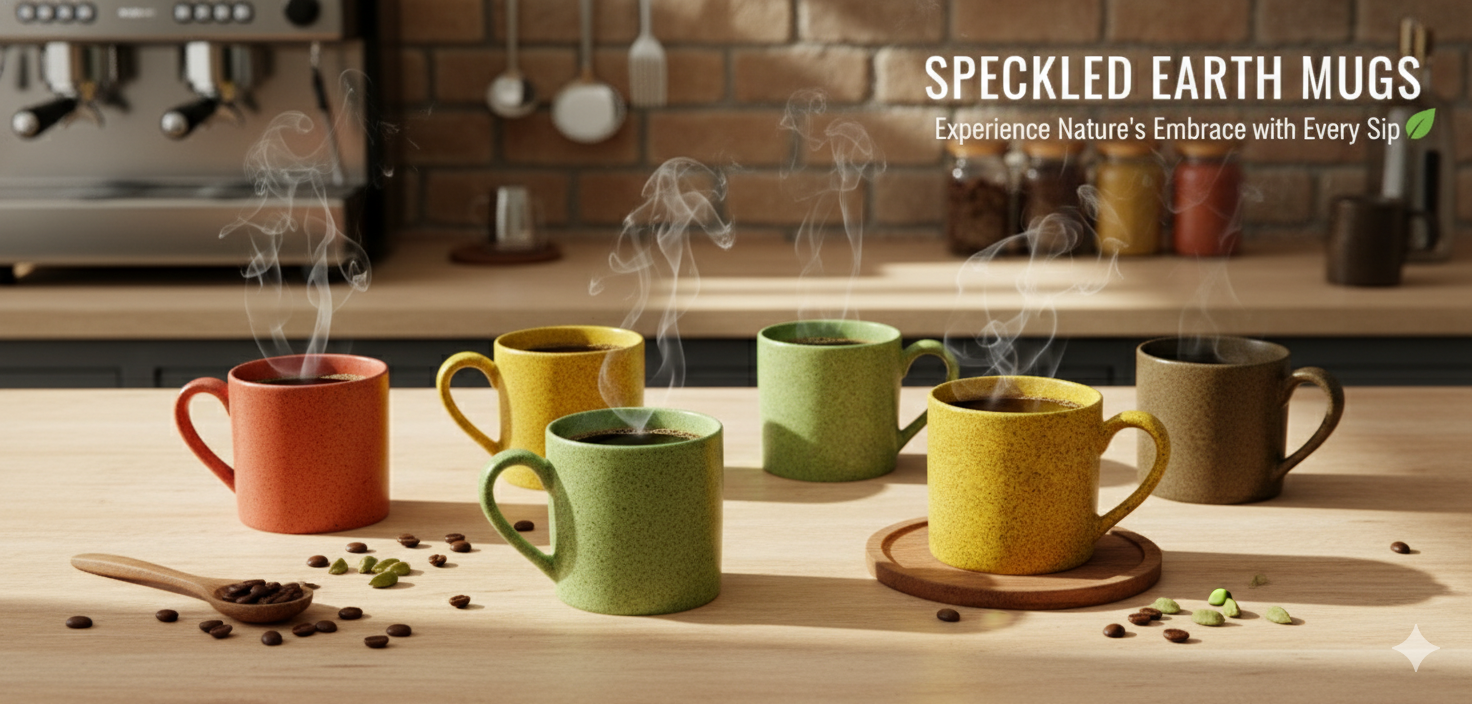 Elevate your daily coffee or tea ritual with this stunning set of six speckled ceramic mugs. Each mug boasts a unique, rustic clay-like