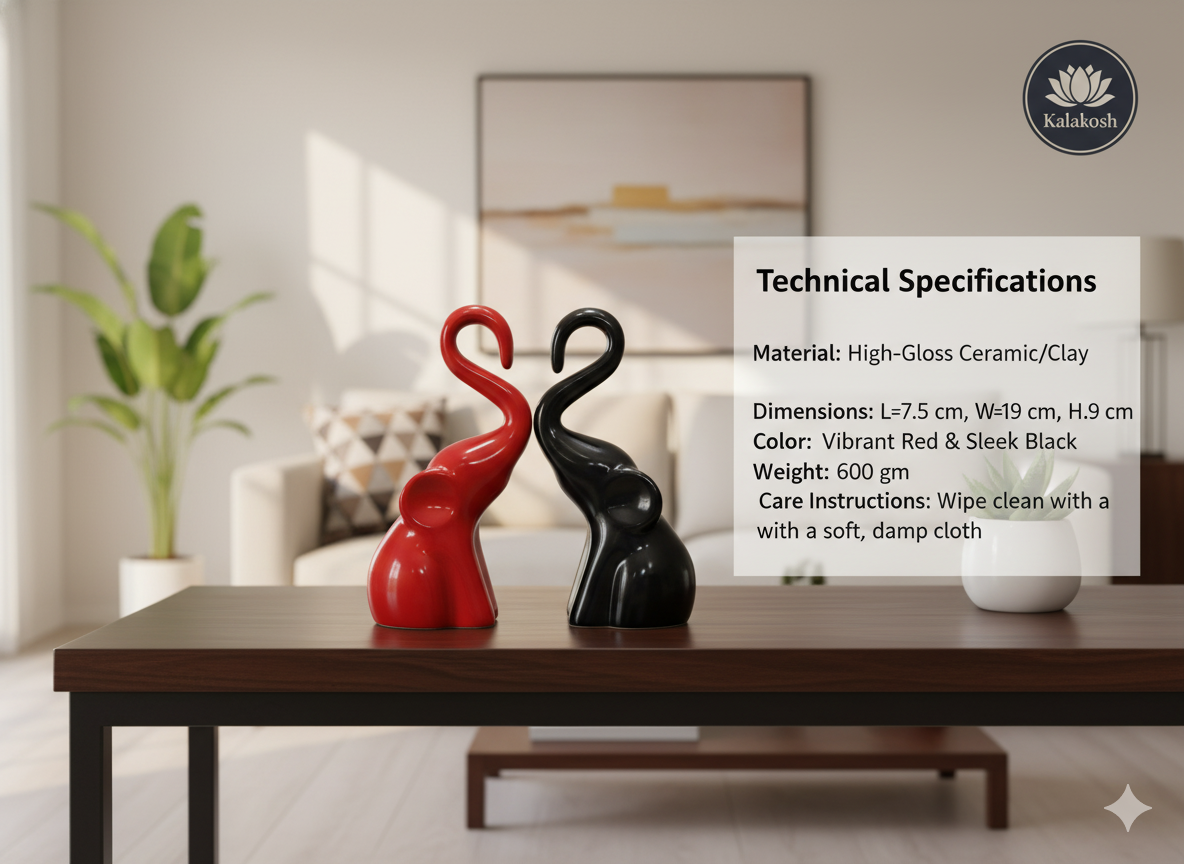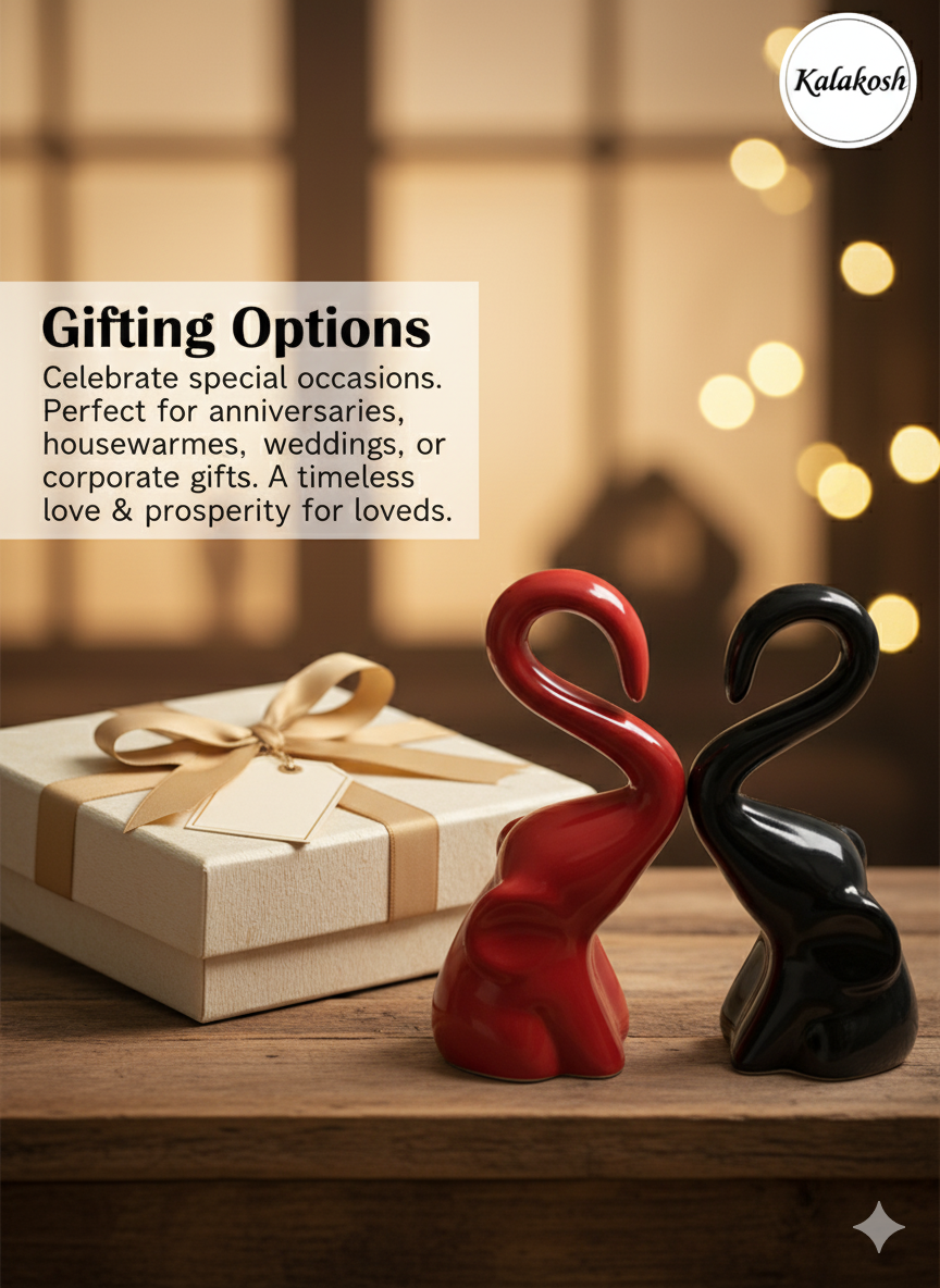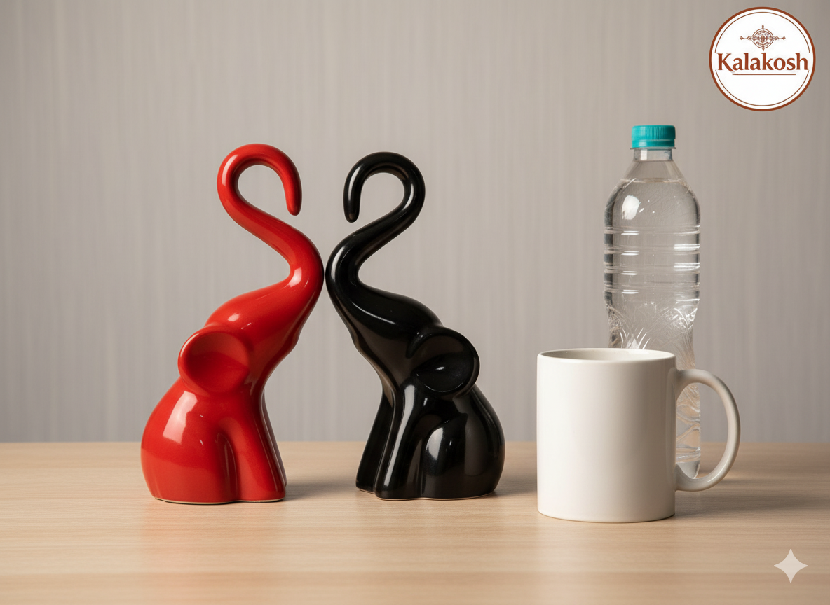 More than just a showpiece, these can function as unique eco-friendly clay planters (if they have an opening for a small plant/succulent) or simply stunning decorative accents. The elegant S-curve of the elephants' trunks forms a beautiful heart shape when placed together, symbolizing love and companionship—an ideal motif for any setting. Made from durable, high-quality clay, they promise longevity and a premium feel. Looking for the perfect gifting option? These ceramic elephants make a memorable and thoughtful present for housewarmings, anniversaries, or corporate events, appealing to anyone who appreciates handcrafted, artisanal products. Elevate your interiors with this blend of tradition and contemporary style.
