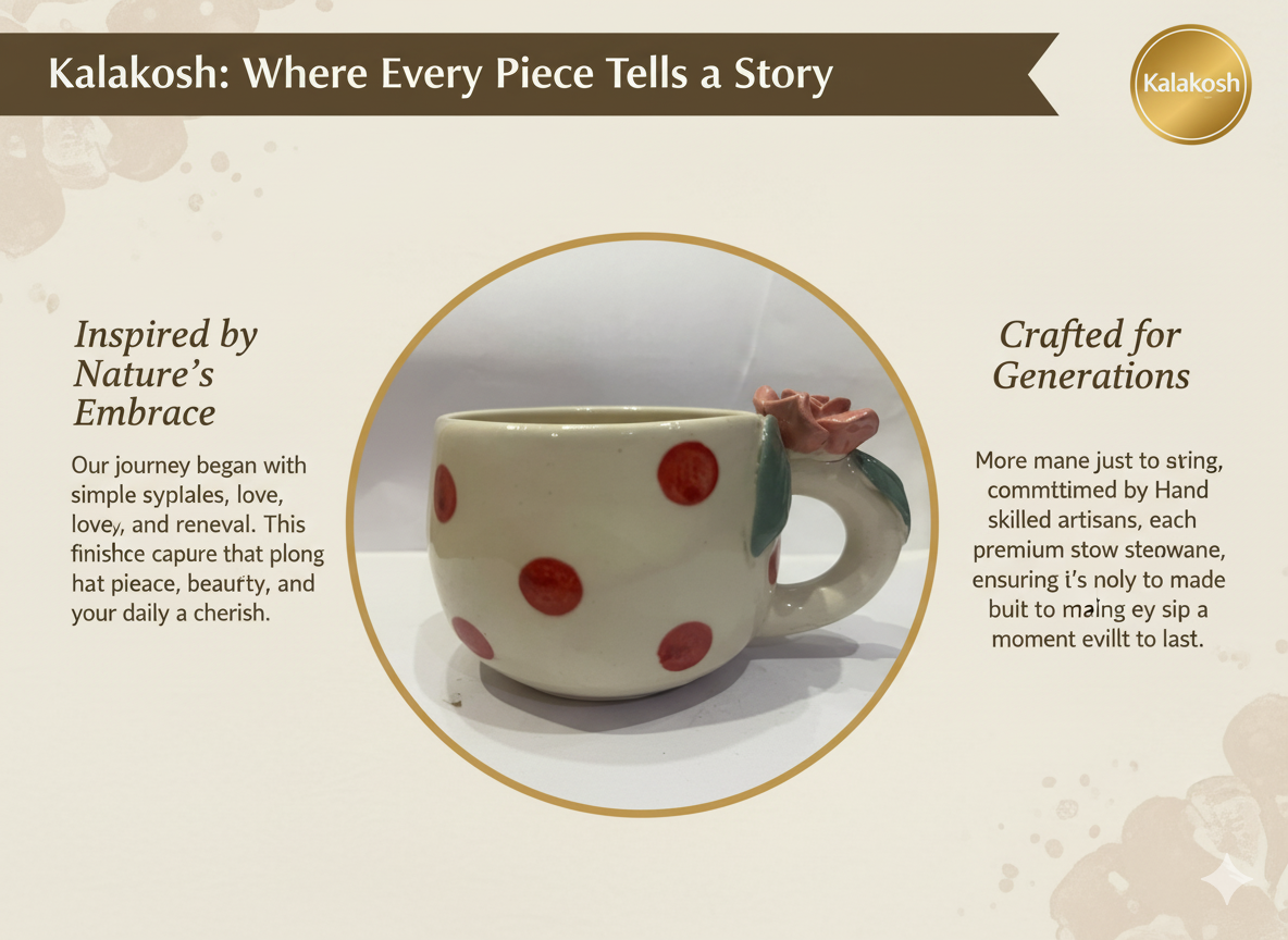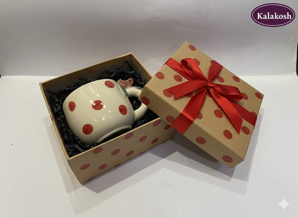 Charming Polka Dot Ceramic Coffee/Tea Mug with 3D Rose Handle | Unique Home Decor, Office Use & Gifting | Premium Stoneware Cup