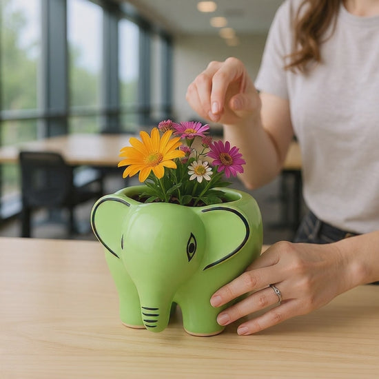 Handcrafted Ceramic Elephant Planter for Succulents & Plants | Rustic Clay Home & Office Decor | Eco-Friendly Gifting