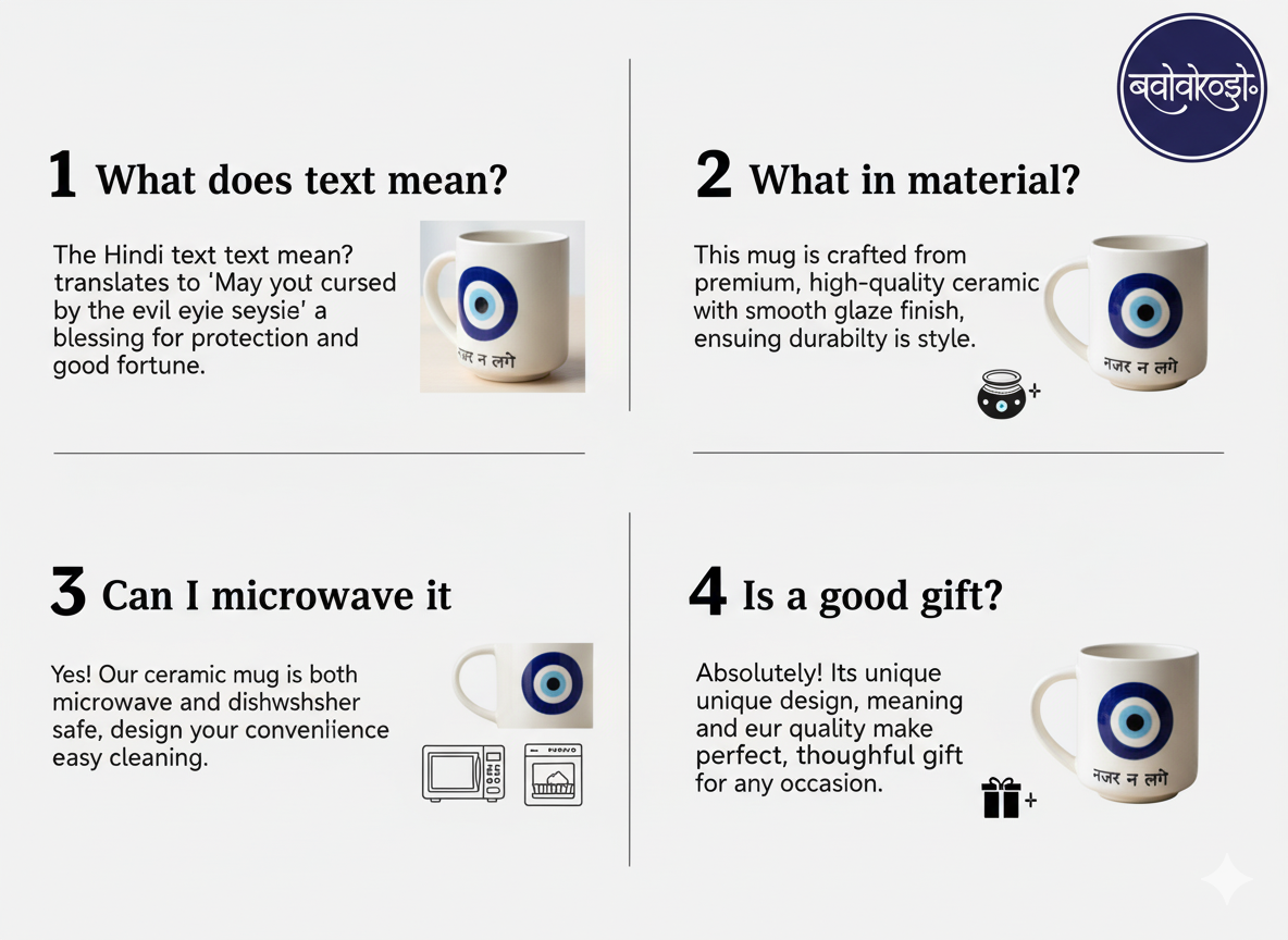 This beautiful Premium Ceramic Coffee Mug is more than just a beverage holder—it's a piece of protective home decor and a conversation starter. Featuring the universally recognized Evil Eye symbol and the heartfelt Hindi phrase "नज़र न लगे" (Nazar Na Lage), which translates to "May you not be cursed by the evil eye," this mug brings an aesthetic touch of good fortune and positivity to your daily ritual.
