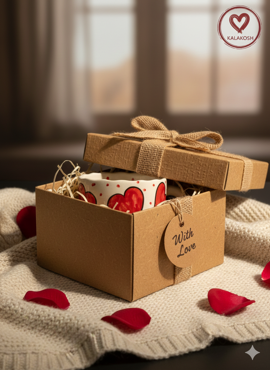 Hand-Painted Ceramic Heart Mug for Coffee Tea | Home Decor Office Use | Unique Terracotta-Style Cup | Best Gift for Lovers & Home Use