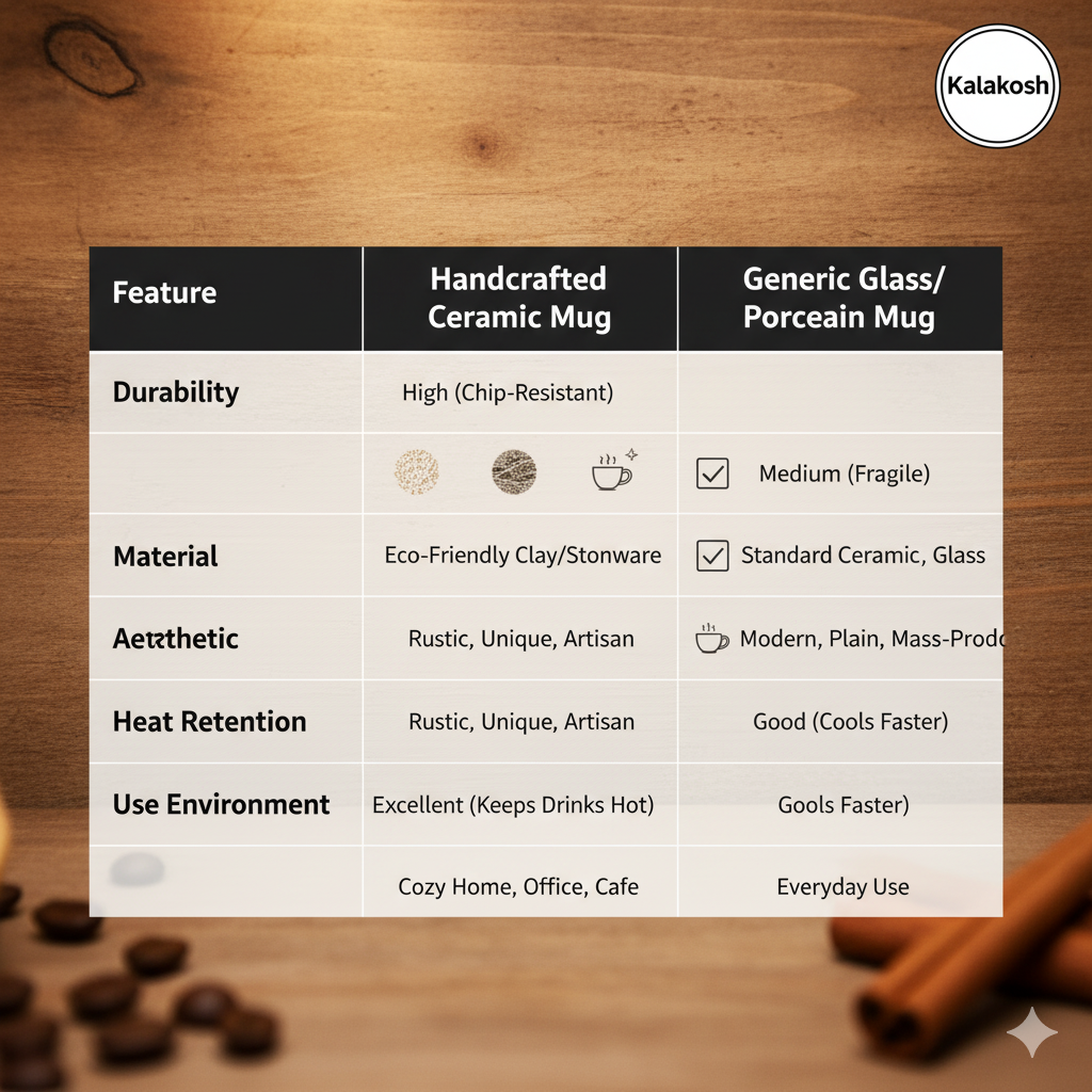 Experience the perfect blend of rustic charm and modern quality with our Handcrafted Ceramic Mugs. Designed for the discerning individual who appreciates artisanal products, this mug brings a premium aesthetic to your home use and office use routine. Each mug is a unique piece, individually shaped by skilled hands from natural, eco-friendly clay/stoneware, making it a sustainable choice you can feel good about.