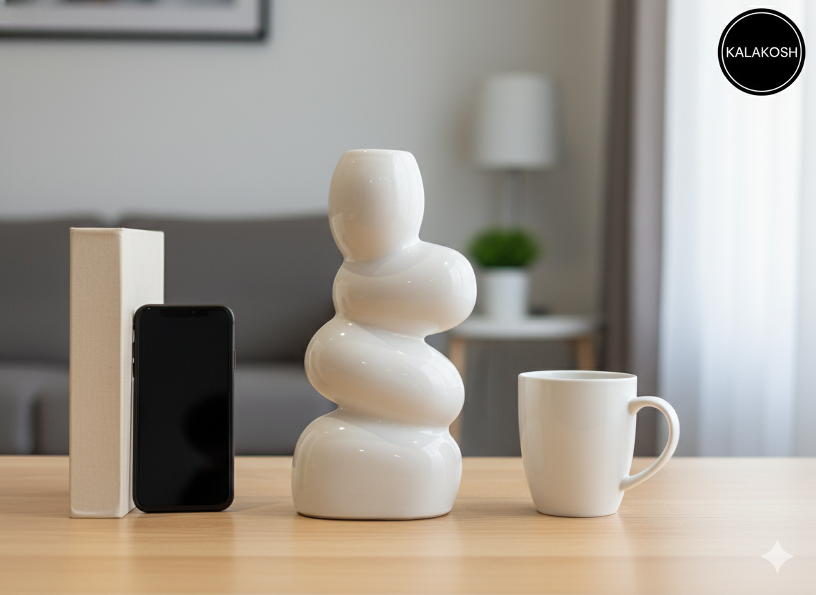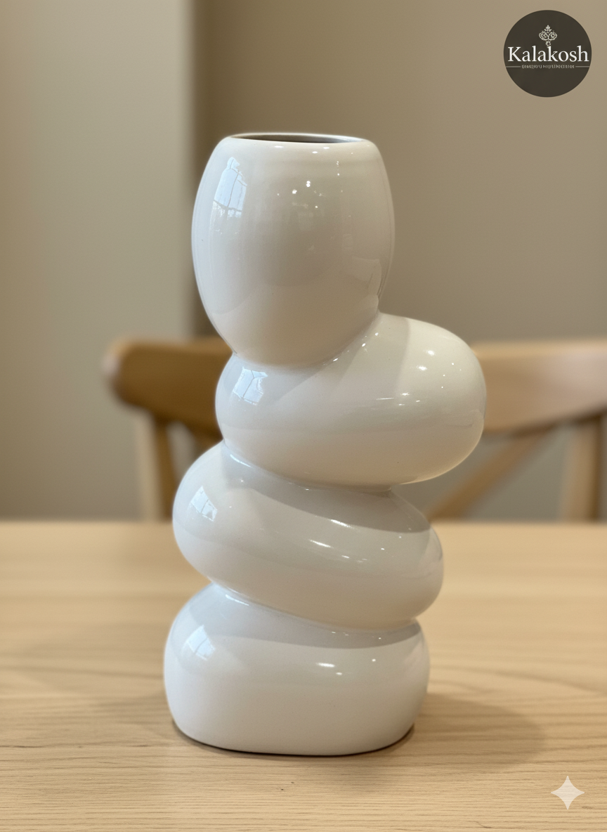 The sleek, glossy white finish provides a premium look that complements any interior style—from minimalist to boho-chic. Use it to display vibrant fresh flowers, dried botanicals, or small indoor plants. Its sturdy build and artistic appeal instantly elevate a bedside table, work desk, or living room mantel.