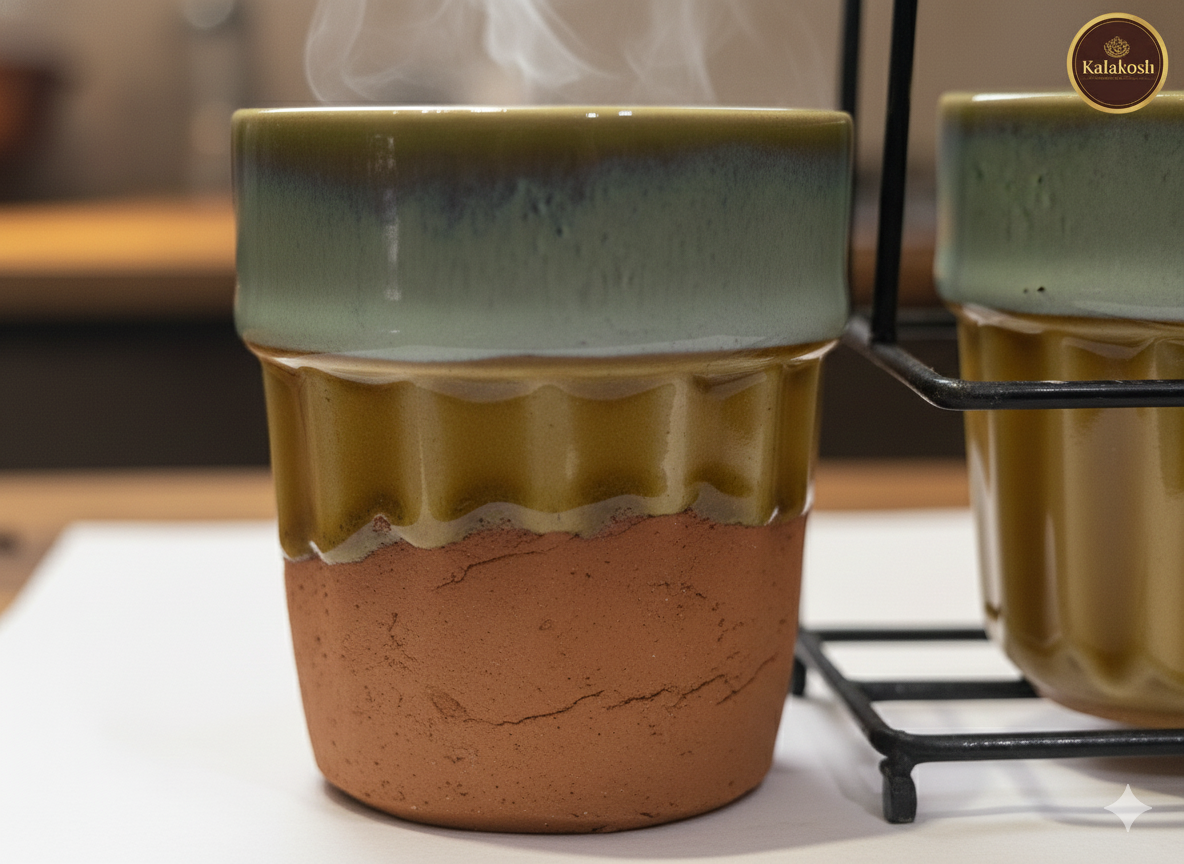 Ergonomic Ribbed Design: The elegant vertical fluting provides an anti-slip grip and a vintage "kullad" feel, merging traditional Indian pottery styles with contemporary office use needs.