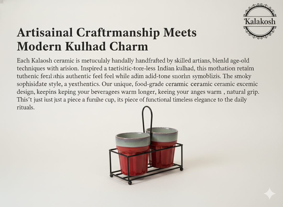 Versatile Functionality: Ideally sized for tea, coffee, espresso, or traditional lassi. The ergonomic, handle-less kulhad design provides a comfortable grip for both home and office use.