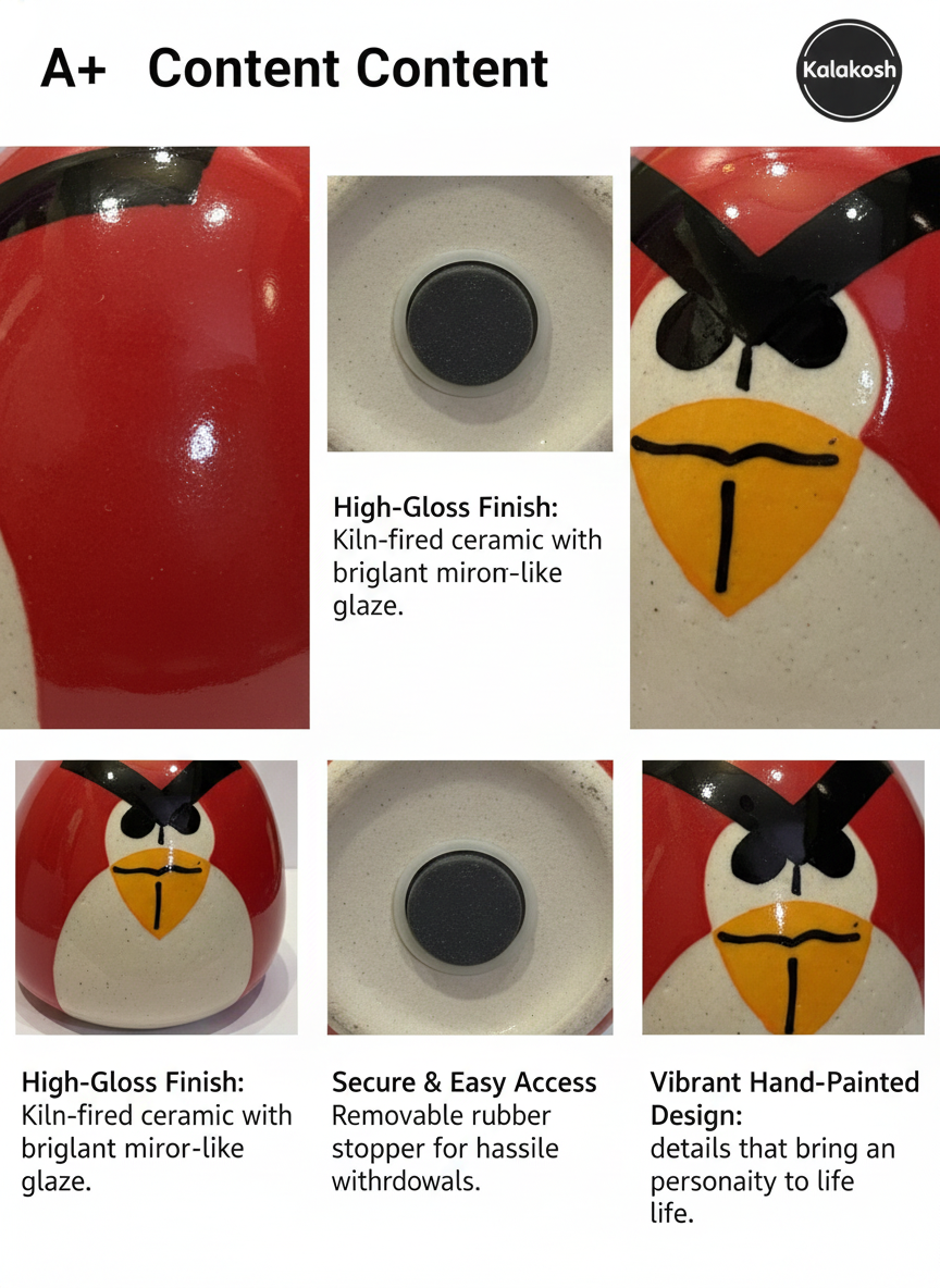 The design features a bold, hand-painted aesthetic that captures the "angry" yet adorable persona of everyone’s favorite feathered hero. Made from high-quality, durable ceramic, this bank provides a sturdy and eco-friendly alternative to plastic containers. Whether you are looking for a home decor vase alternative for a themed room or a functional piece for office use, this bank adds a pop of color to any environment.