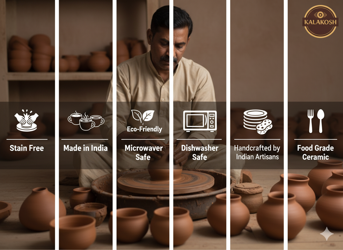 Natural Cooling Effect: The porous nature of terracotta clay allows for natural evaporation, which subtly cools your beverage. Enjoy water, lassi, sherbet, or any drink at a delightfully refreshing temperature without needing ice.